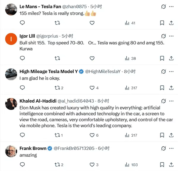 最后唠点实在的:车子安全性能再牛,也架不住马路当赛道。这次特斯拉车主能笑着提新车,下次换个人呢?散了吧,都别学AMG车主当马路英雄——250公里的速度,撞赢了进局子,撞输了进盒子。 |